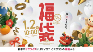 #INFORMATION 2025.12.19 PIVOT CROSS「福袋2026」 【1月2日(金)AM10時スタート】 冬物アイテムなどをお得にGETできる、年に一度のチャンス!! この機会をお見逃しなく♪ ※開店前にお越しの際は北側入口(ZARA前エントランス)にお並びください。 開店作業のため西側入口は10時にはオープンいたしませんのでご注意ください。 ※年始より前に販売を開始する店舗もございます。